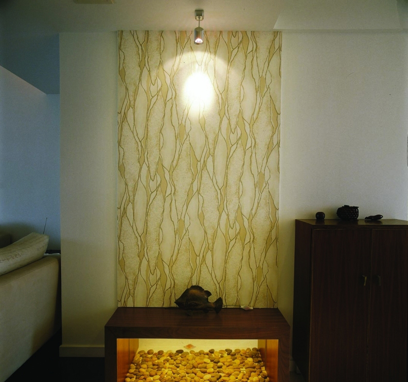墙面上粉饰着特殊的纹理,特意垂下的一盏灯光显得悠闲而惬意。
