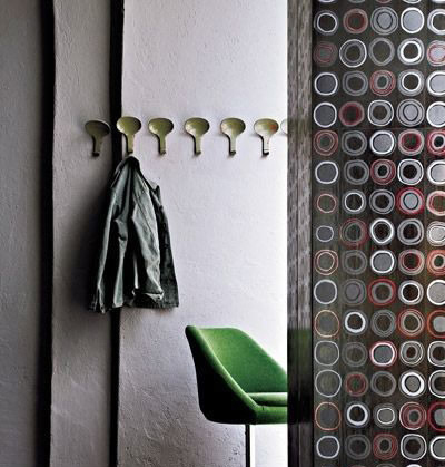 黑色的瓷砖绘着不规则的POP图案,红色、灰色和蓝色的圆圈套叠,仿佛出自小孩子的手笔,显得颇有童趣。黑色的冷峻和烂漫的童真相结合,让这一处墙面绝对是空间的焦点。