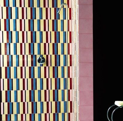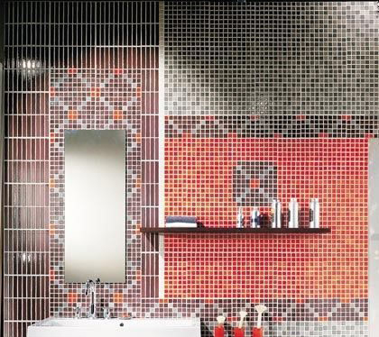 选用多种色彩的瓷砖和马赛克拼贴,铺贴方向和形状也打破传统,形成不同的几何造型图案,在视觉上形成冲击,红色的融入让空间充满热情。