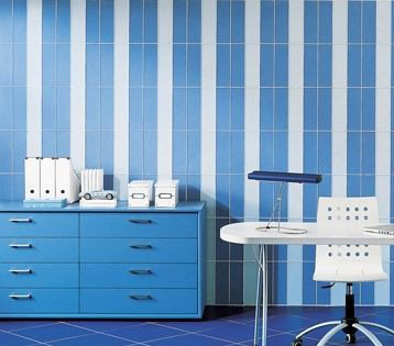 深浅蓝色两种瓷砖拼贴腰线,铺贴方式也由传统的横贴变为竖贴,空间的立体感油然而生,空间的线条也十分流畅,让整个空间都显得清新宜人,且不失时尚与高雅。