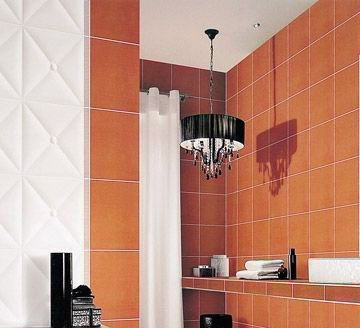 整体橘色的卫浴空间色彩浓艳,白色的凹凸瓷砖装饰局部,不但可以削弱空间的热烈氛围,立体的装饰效果更让空间的重点突出,给卫浴间带来了从未有过的生动。[page]
