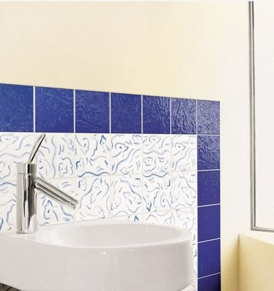 用花砖和蓝色方砖拼贴突出空间主题墙