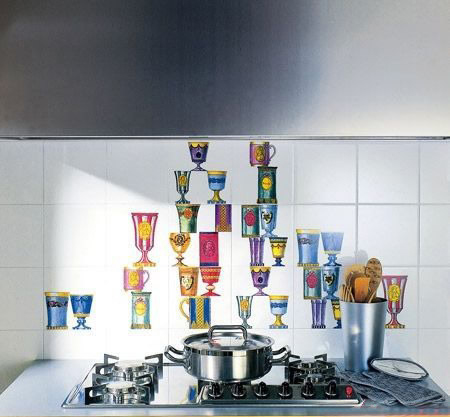 色彩鲜艳各种杯子图案瓷砖,会让厨房这一处墙面显得活泼有趣,且艺术感十足。