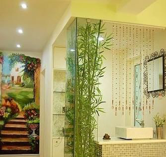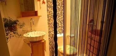 盥洗室与客厅用线帘做隔断,营造了一种浪漫温馨的感觉。