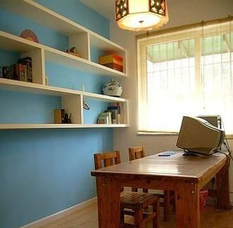 实木的书案,宁静的蓝色墙面,给小朋友营造了一个绝佳的学习环境。 [page]