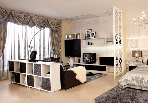 黑色的沉稳,白色的轻灵,再配以暗底花纹,若隐若现,使整个理性而沉静的空间顿时带有一丝女性的柔媚气质,充满黑色蕾丝般的诱惑力。