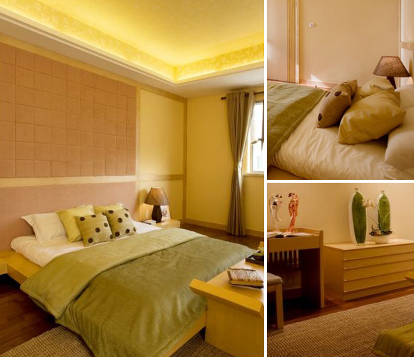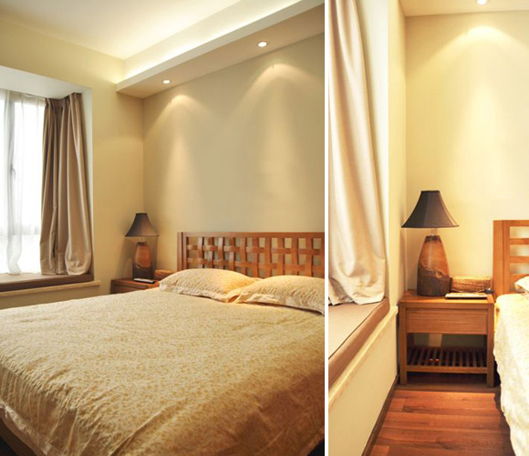编辑点评:编织的格子状的床头非常独特,体现了日式风格中对家具简洁有几何立体感得追求。[page]