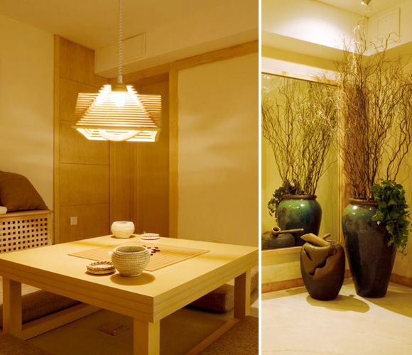 编辑点评:房间的每个小细节都在追求自然的感觉,木质的吊灯,藤制的围棋盒,实木打造的方桌,以及和室门口的花艺。无不取材于自然,展现其最原态的形貌。[page]