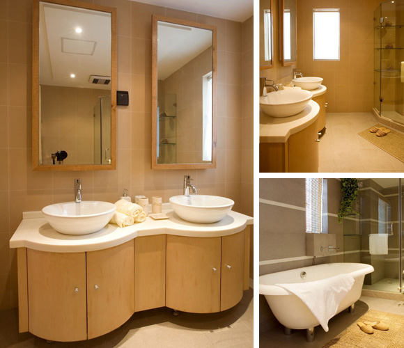 编辑点评:地垫和拖鞋也是自然材质编制而成,既防滑又充满自然气息,浴柜的圆弧造型突破了方正的形状,却依然很规矩。