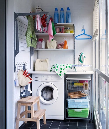 不少挨着客厅的阳台,都还担负着洗衣晾晒的功能,可是收拾起来的时候,就比较麻烦。其实,只要规划得当,划分出洗衣区、晾衣区、熨衣区;配合利用功能强大的小道具,我们就能一步到位地拥有“一体化”的工作区域。在节省空间的同时,更省下了时间。