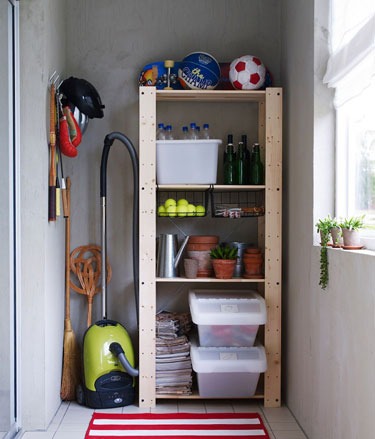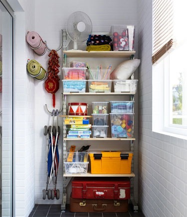PIONT4:面积小杂物多的阳台,利用搁架分类收纳。