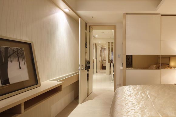 书房系利用玄关的转折区域安排出阅读及延伸的空间感,全区以清浅的米色安排,延续公共空间的彩度基调。