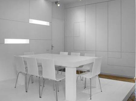 搭配点评:整个空间就是浑然一体的白色,桌椅地板和墙面融合在一起,把简约风格的餐厅演绎到极致。背景墙的线条增添了一些空间的层次感。[page]