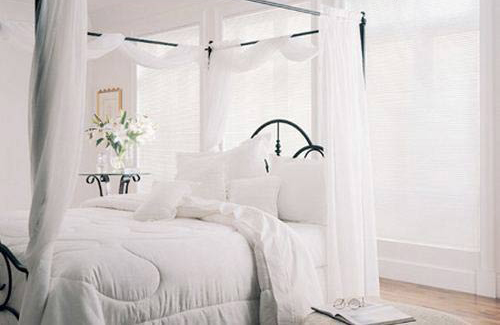 搭配点评:床品、帷幔和窗帘是清一色的白色,恍如进入了一个梦幻的国度,身心都融化在其中了。