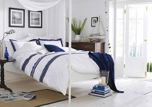 搭配点评:蓝色给这个白色的卧室注入了一种沉稳的感觉,它点缀了白色的基调,又很好的融入在其中,看上去非常舒服。