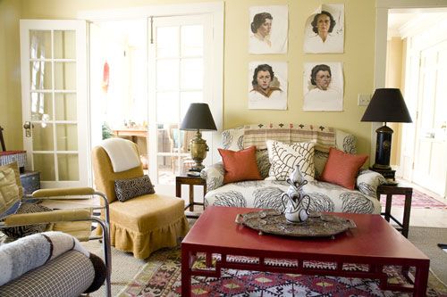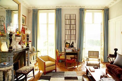 罗曼蒂克的装饰风格,质地柔软的优雅褶线,日光透过橘黄色的帘布将墙面、屋顶、沙发笼罩在金色的光晕中,浓重的色彩让房间呈现出舒适的奢华与浪漫的情调。