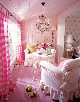 粉色格子的窗帘则受到女孩子们的喜爱,在日光的映衬下,感觉如同进入童话般的梦幻境界。