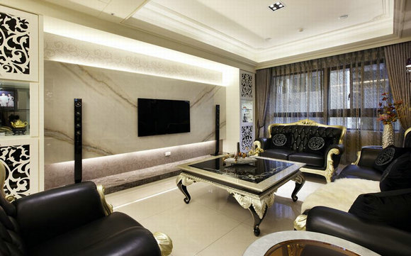 主要建材:黑网石、银狐大理石、灰网石、瑞士白大理石、壁布、皮革