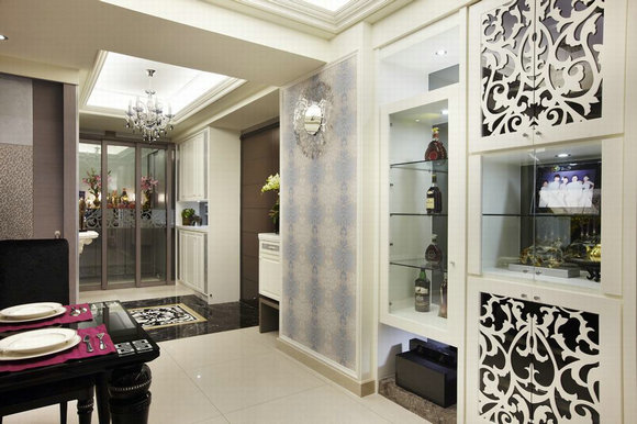 精致雕花门片、开放式展示层板和造型壁纸,一步一景。[page]