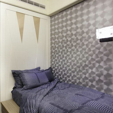 两张单人床以隔屏弹性区隔,银灰色系展现男孩个性风格。