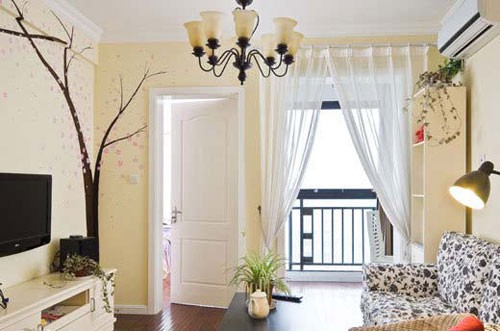 客厅的采光不错,业主家的面积不是很大,选用了小号的家具,非常温馨、别致。特别在市场上买的小花沙发与奶白色的电视柜、书柜搭配起来相得益彰,将空间衬托的从容淡雅。