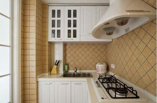 业主家的厨房面积不是很大,所以选用了单水槽。在这个小空间里,仍然没有逃脱田园的影子。白色的橱柜、欧式的脱排和油烟机都性十足。