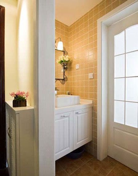 卫浴间延续了整个空间中白色家具的风格,搭配复古质感的瓷砖,将田园的纯美和质朴展露无遗。