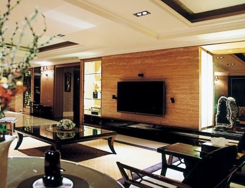 透过实木材料的古典美,玻璃、金属等现代材质也被运用其中,由单一材质进入异材质融合的介面设计,背景墙通常以着重从软装饰方面入手,搭配简约的居室风格,恰如其分地展现华贵气质。