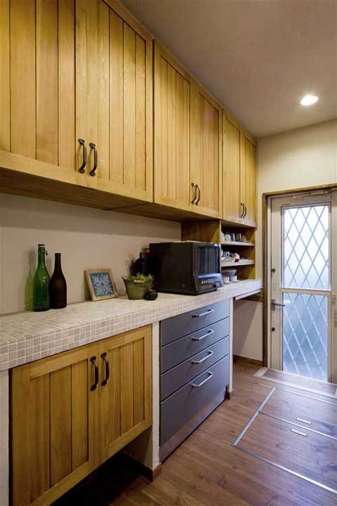 橱柜也同样是原木材质,充满欧式风情。一切井井有条,给人干净利落的感觉。