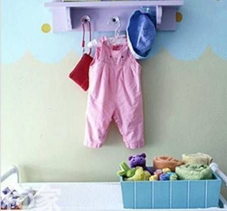 根据孩子的身高,运用两根麻绳也能打造出一个简易的收纳区,同时还能够合理利用墙上的空间来张贴孩子喜欢的作品。