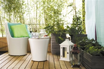 除花草外,阳台上摆放漂亮舒适的坐椅,可以成为休憩之地。