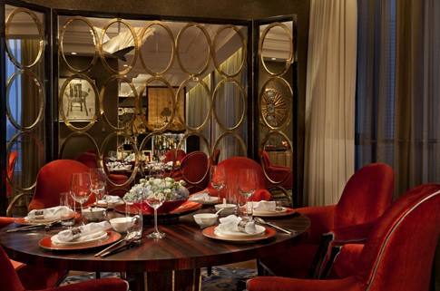 运用偏深的基地色,透过空间内的金、银、漆器面,丰富视觉层次,同时也形塑出老上海的奢华质感。