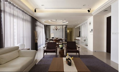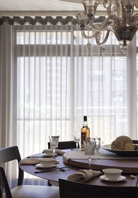 中式圆桌一般令人有拘谨的气氛,装修第一网提醒业主其实搭配上削薄的实木材质,就能符合现代空间的轻盈及简约调性。
