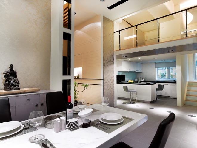 绽放时尚旋律的132平米复式两居 2014-05-19 宁波装修网 宁波装修网今天介绍的案例设计在格局上的精准配置、风格与质感上的掌握,在立面比例中透过不同材料质地与调性加以协调,所有介面之间的转换再运用不鏽钢收边,让温暖与时尚的质感更为突显。