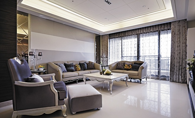 宁波风格城事166平华美气质奢华公寓 2014-09-27 宁波装修网 今日推荐这款华丽高档大户型采用后现代中欧混搭的风格设计位于宁波市鄞州区风格城事小区,户内采用一体的浅色装修色调,再使用零星的几点紫色蓝色加以点缀,凸显出整个房子的优雅和高贵感。是具有一定经济实力的管理层必爱的装修设计。
