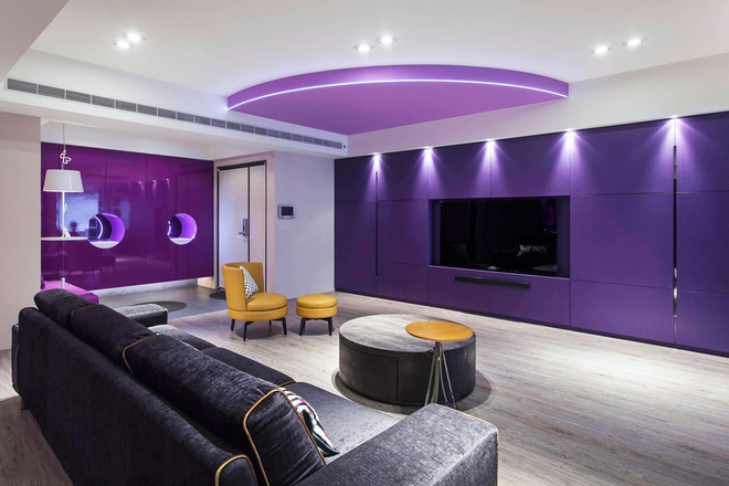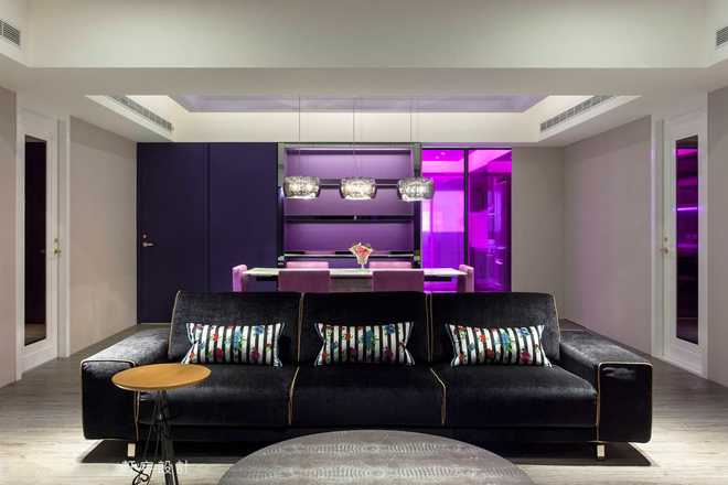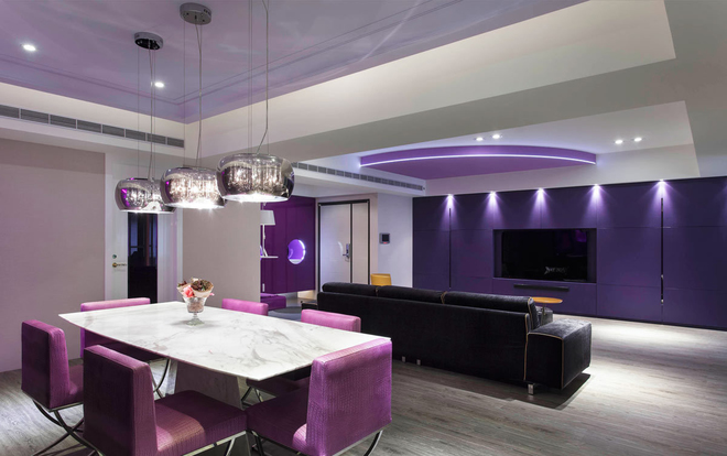 青林湾260平米紫色梦幻大宅 2015-01-08 宁波装修网 宁波装修网今日推荐案例——青林湾260平米紫色梦幻大宅:本案设计师以崭新形态与缤纷色彩,为长期旅居伦敦的屋主,量身打造独一无二的特色住宅,让每位来访的宾客感受视觉冲击与创意浪潮,丰富每个人的视野与心境。甫进门,宛如进入一处色彩鲜明的国度,空间中以紫作為主色调,并运用14种不同色阶来呈现,大胆玩味设计语汇。
