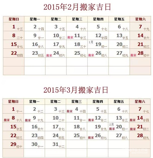 以上就是2015年装修开工吉日和2015年搬家吉日了,准备着手装修的业主们可以先收藏起来哦。装修也是件喜事,从中挑个好日子,让装修有个吉利的开始!