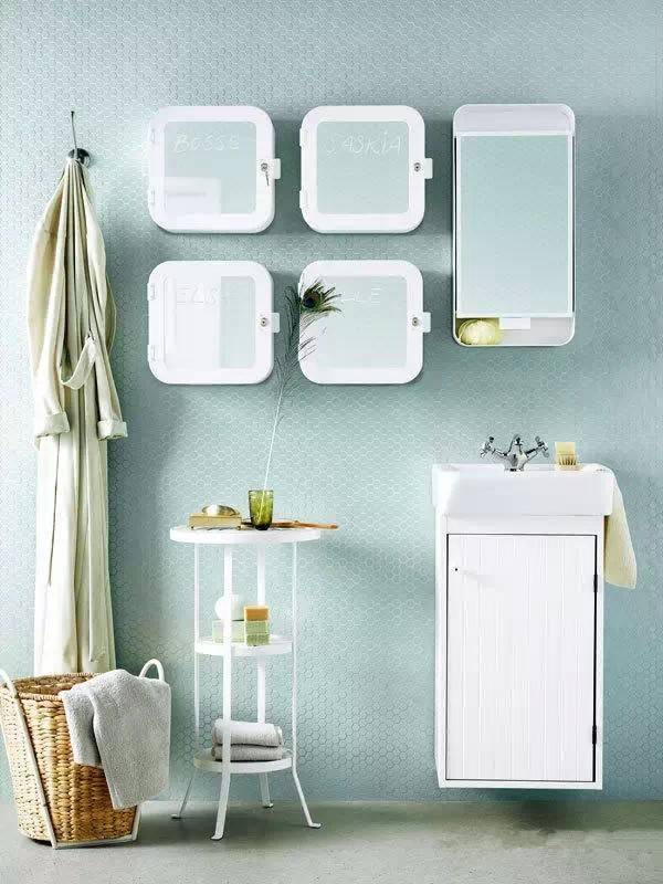 卫生间收纳大功能,妙招在这! 镜柜 一柜两用,既有储物空间,又有梳妆镜,再添置些明亮的照明灯,每天早上都要美美的出门 高柜 高处适合放置纤长的搁架,节省空间。 马桶上的空间利用 马桶上方的墙壁是空的?那可就浪费了哦!利用连壁搁板、篮筐、物盒自由组合,形成开放式和封闭式储物空间,生活也变得便捷起来! 封闭式储物 将暂时不用的物件放到封闭式的柜子里,不显杂乱又实现了干湿分离。居家收纳是让很多人都头疼的问题!分享几个小妙招,分分钟让你的卫生间焕然一新、井井有条,拿走不谢~